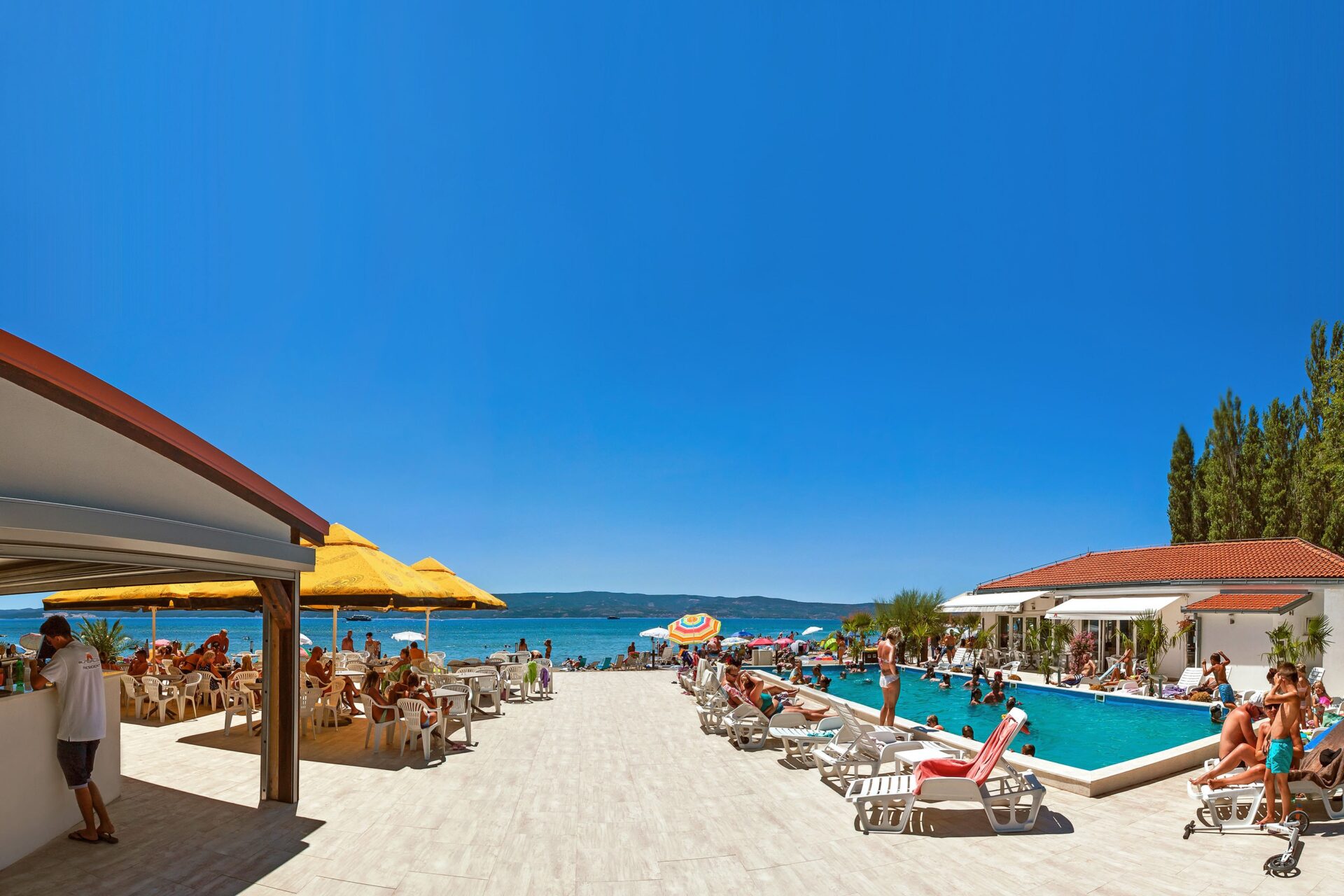 Her du kan nyde at svømme, dyrke windsurfing og stå på vandski, og du kan selvfølgelig også ligge på sandstranden og nyde solen. Camp Almissa har en swimmingpool med en beachbar. Der er nok af skygge, hvilket er skønt på de varmeste sommerdage! Her er komfort højt prioriteret, og der er noget for enhver smag: Hav det sjovt, mens du får motion på sportsarealet, smag på den dejlige mad i restauranten (der ligger lige ved havet), eller lad dig overraske af det omfattende underholdningsprogram. Campingpladsen laver arrangementer for de sporty feriegæster. Børnene morer sig på legepladsen og i miniklubben.